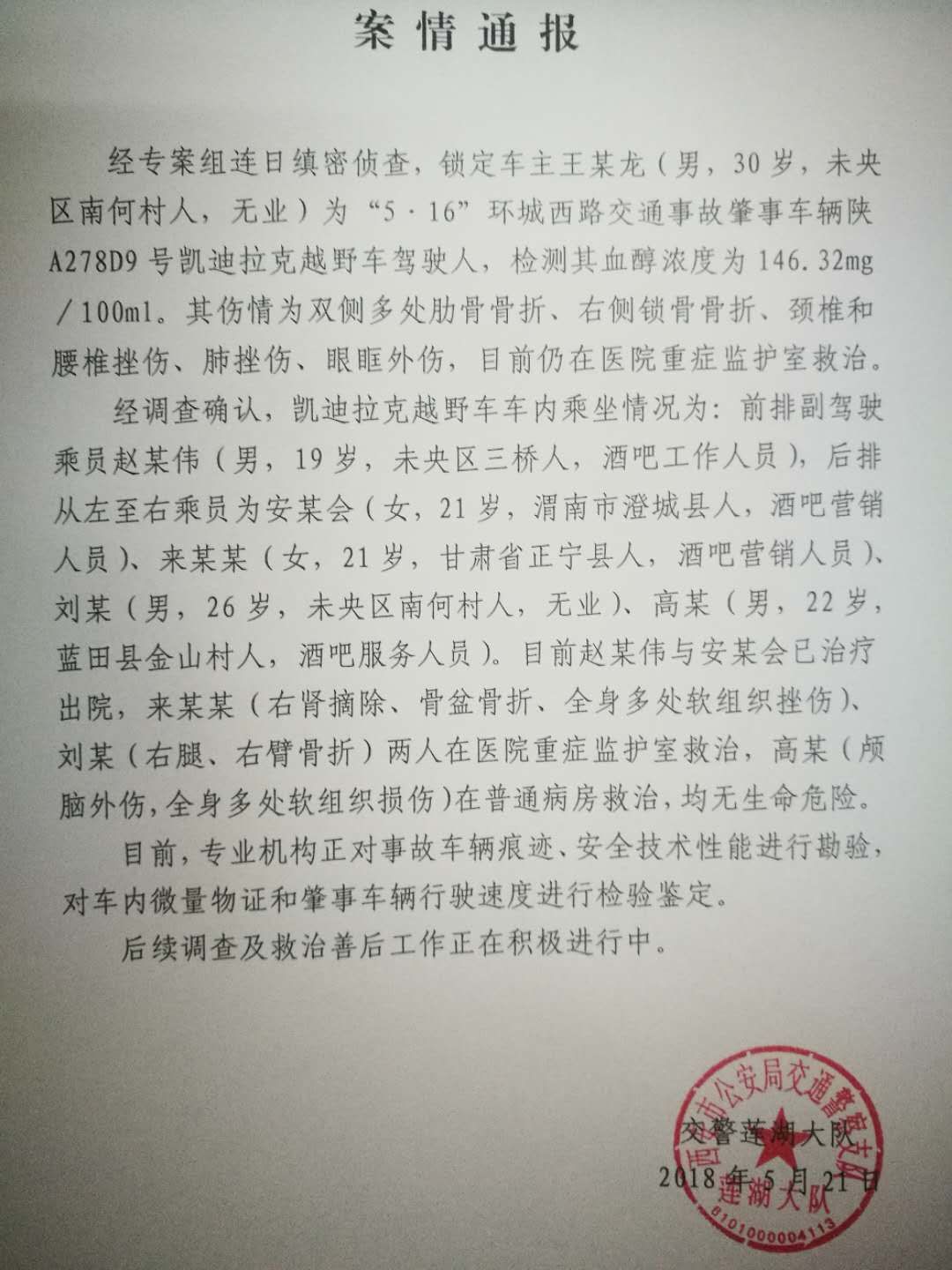 刚刚,西安市公安局交警支队莲湖大队发布“5.16”环城西路交通事故案情通报。