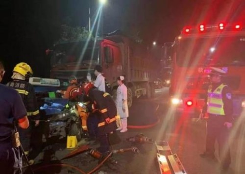 据悉,2020年1月4日22点左右,位于海口市火山口大道绿色长廊中段发生三车相撞的交通事故(前车为水泥罐车,中间为出租车,后面为载重货车),三车连撞,将载有四人的出租车挤压在中间严重变形,四人被困的士,其中两名大人、两名小孩。海口消防救援支队特勤大队接警后22点35到达现场,经过数十分钟的奋力扑救,终于在23点20分将四名被困者救出,被救者生命体征良好,现场移交给120进行处置。目前,事故原因还在进一步调查之中,事故的场景令人一阵后怕,现场的居民都是心有余悸!