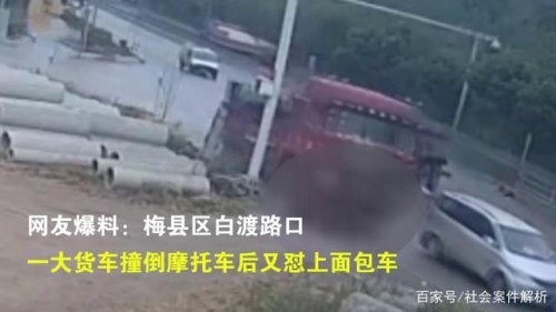 据悉,事发在12月5日下午,梅州市梅县区白渡路口,当时被撞的摩托车和面包车都属于正常行驶,而红色半挂车在行车时忽然失控,先是撞上了摩托车,在将摩托车推行数米后,又撞断了路旁的一根监控杆柱子,随后再追尾了前方一辆面包车,致3车不同程度受损,路灯杆损坏,摩托车司机倒地不起,接警后,当地公安,消防,医疗等部门立即赶赴现场处置,目前伤亡情况和事故原因还有待官方进一步通报。