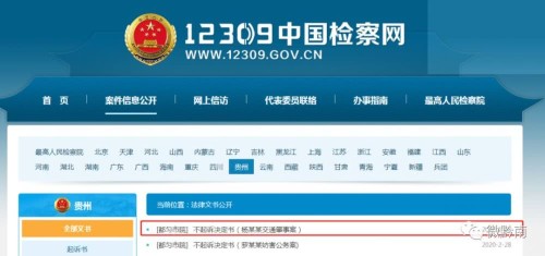 2月28日,12309中国检察网公布《[都匀市院]不起诉书(杨某某交通肇事案)》。
