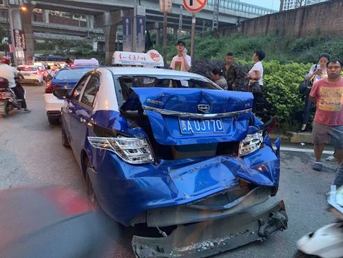 昨日下午,贵阳市南明区闹市发生一起交通事故,花果园J区往艺校方向一辆大客车在下坡过程中突然往下冲,撞向路上行驶着的汽车。
