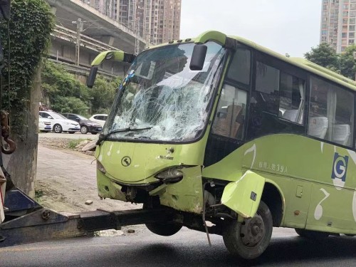 据现场目击者称,大客车从J区旁的坡上冲下来,把路中的车都撞到了旁边,然后直接滚到了天桥底下。