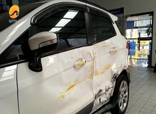 上午十点多,在省道201线惠安辋川后坑村路段发生一起交通事故,一辆土方车与一辆SUV在同方向行驶时发生碰擦事故。民警行车记录仪解说前面的车突然刹车,SUV小车赶紧往左闪,变道了突然撞上去,这是谁不对?这是小车,小车变道的责任。从SUV的行车记录仪可以看到,SUV前面的一辆小车突然刹车,为避免追尾,SUV司机便向左打方向突然变道,后面的一辆土方车刹车不及,将SUV左侧刮到。事故造找SUV左边两扇车门凹陷变形,但双方驾乘人员均没有受伤。