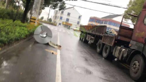 【微靖江】事发孤山山南路,一辆货车车厢突然掉落一捆卷板,事故造成
