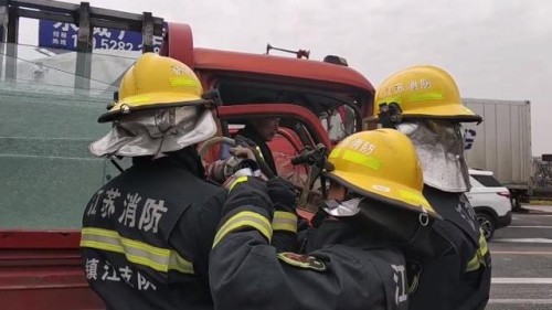 据悉,2019年1月1日9点左右,位于312国道镇江丹阳河阳高速出口处发生追尾事故。一辆满载玻璃的货车与另一辆货车发生追尾,追尾货车右前侧车体损坏严重,车辆挡风玻璃碎渣散落一地,副驾驶一老人被变形车体卡住腿部,消防队员立即使用液压破拆工具组对变形车门进行破拆,经过10分钟的迅速救援,被卡老人被成功救出。经询问追尾货车驾驶员了解,当时前方货车在红绿灯前停车,后面的司机没有反应过来,由于刹车不及时导致追尾。目前,具体的原因还需进一步调查。