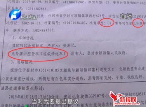 随后,记者电话联系到登封市颍阳镇副镇长张文科,张文科承认环卫车属于报废车,并表示,如果有驾驶证,就一点责任都没有,就是因为驾驶员证件不齐。