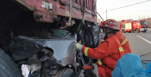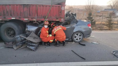 2020年3月6日17时56分,西吉县消防救援大队接到119指挥中心调度称:位于西吉县硝河乡高塬村路口发生交通事故,吉强站接到命令后,立即出动4车12人赶赴现场处置,18时19分,救援人员赶到到场,发现一辆小轿车发生追尾一辆半挂牵引车,导致轿车驾驶员被困车内,现场情况十分危机,急需救援。