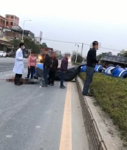 事故发生后,交警和医护人员到现场处理,随后,伤者被盖上布。