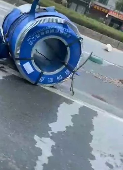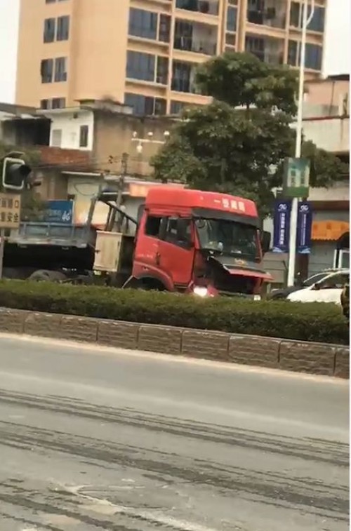 今天收到网友报料,称早上在揭东云路北洋附近路段发生一起车祸。从视频可见,一辆大货车穿过车道中间绿化带,车上钢圈散落在地,车身严重受损。现场两人躺在地上,旁边还倒着一辆摩托车。