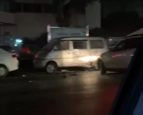 视频中可见:一辆白色小车横着停在了路中间,旁边有其他车辆被撞到凹了进去,还有一辆灰色小车撞上了边上的绿化带!破碎零件散落一地,但最令人心痛的是路面上有两名伤者倒地不起!