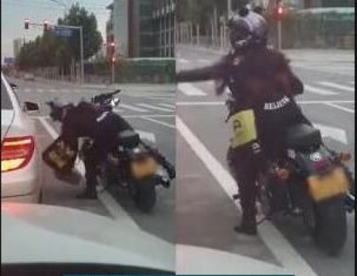而此时又从后面来了一位骑摩托车的女生,