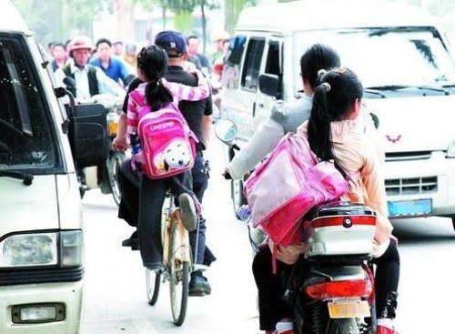 家长们送孩子去上学的场景都很常见