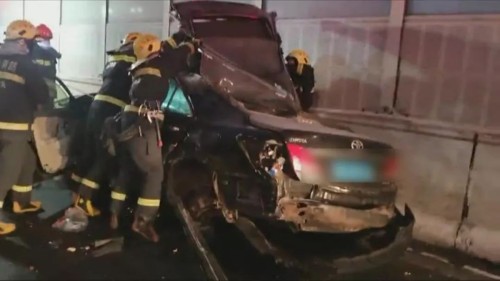 为了保障救援顺利 又不对其它车辆通行造成影响 消防队员分成两组 一组配合交警疏导交通 一组用液压破拆工具将车门顶开救人 不幸的是,副驾驶男子已经身亡……