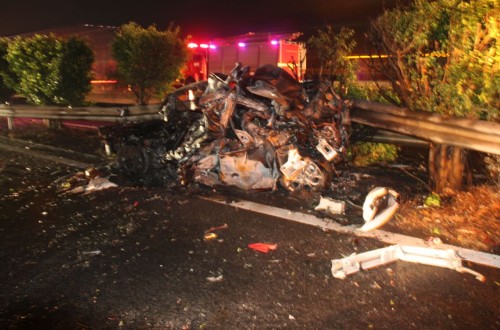 经初步了解,碰撞并受损车辆为1辆桂B牌重型货车,1辆粤A牌轻型货车,3辆小汽车(桂C牌、粤B牌、粤S牌),涉事车辆均无运载危化品, 其中粤S牌小汽车着火,造成该车司乘人员5人死亡,明火已于1时40分许被扑灭, 事故无造成其他车辆人员伤亡。