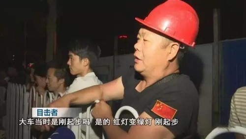 目击者称:“(电动车)左转调头过去,是在大车边上这里转头过去,那个位置大车应该看不见。当时,红灯变绿灯,大车刚起步,电动车转过去,就这样了。”