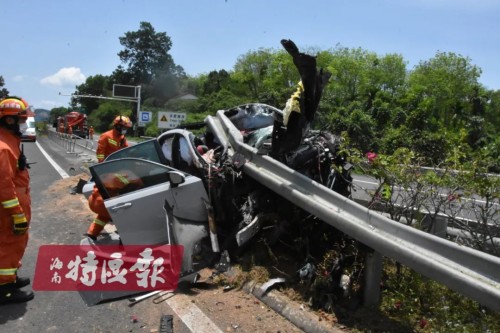 车头撞稀烂!海南中线高速突发车祸!1人当场身亡…|高速车祸