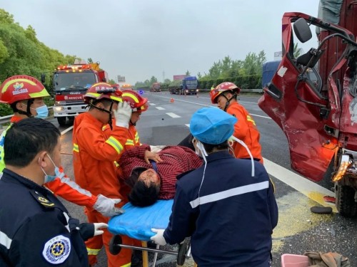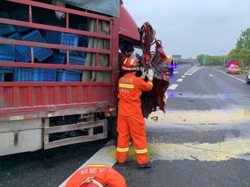 5月8日凌晨4点37分左右,如皋消防大队指挥中心接到报警称:如皋市G15沈海高速由南往北1127公里处发生一起车祸,1名副驾驶被困驾驶室,接到报警后,如皋解放路消防救援站迅速出动一辆抢险救援车、一辆水罐消防车共10名指战员火速赶往事故现场。
