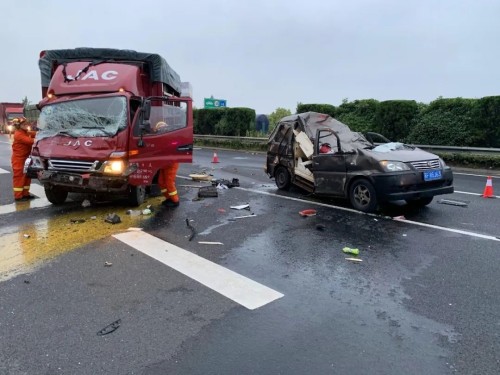 中队到达现场后发现,一辆小货车和一辆面包车相撞后停靠在道路中央,其中,面包车内两名被困人员经医务人员确定,已无生命迹象。